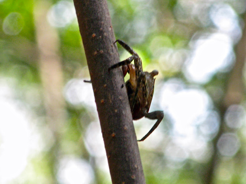 There are bats roosting during the day in the forest near the estuary. This is not a very good photo, as the bat was very dark and I had to enlarge the small section where the bat was located. I did not get very close to the bat, for obvious reasons.